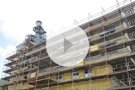 The structural work was completed on schedule and the finishing work is progressing rapidly. With the installation of the windows and the application of the vapor barrier on the roof surfaces, the building envelope has been tight since the beginning of the year. Now it is the turn of the facade work on the outside.
